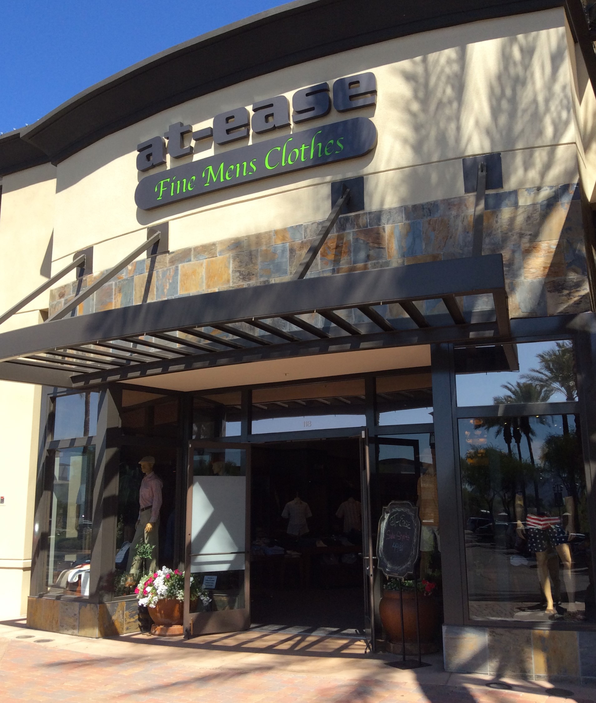 At Ease Fine Mens Clothes is a Scottsdale men's store favorite for more than 17 years. Located now at the Gainey Village Shops to offer more new men's clothing lines and expand our store. Parking is so easy!